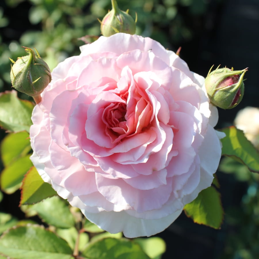 Цветки быстро раскрываются, густомахровые и округлой формы. Цветы розовато-белые.