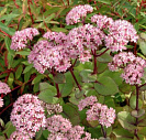 Цветы мелкие, бело-розовые, собраны в соцветия-щитки от 10 до 20 см в диаметре.