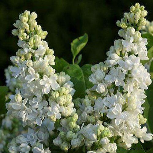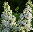 Цветет в мае. Бутоны белые. Цветки белые, махровые, ароматные, собраны в соцветия.