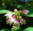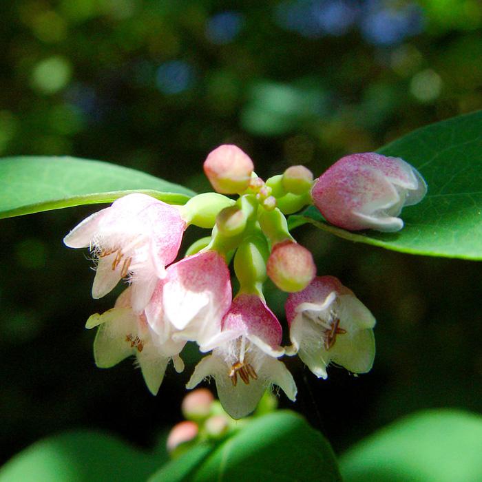 Цветет в июне. Цветки небольшие розово-белые в удлинённых кистевидных соцветиях.
