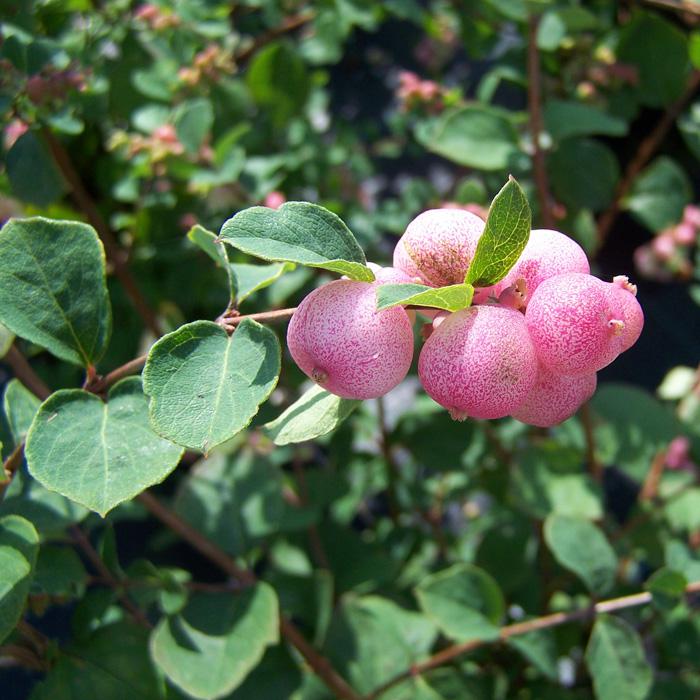 Плоды крупные, округлые, с красным румянцем или жемчужно-розовые, сохраняются до поздней осени. Плоды снежноягодников несъедобны, но безвредны.
