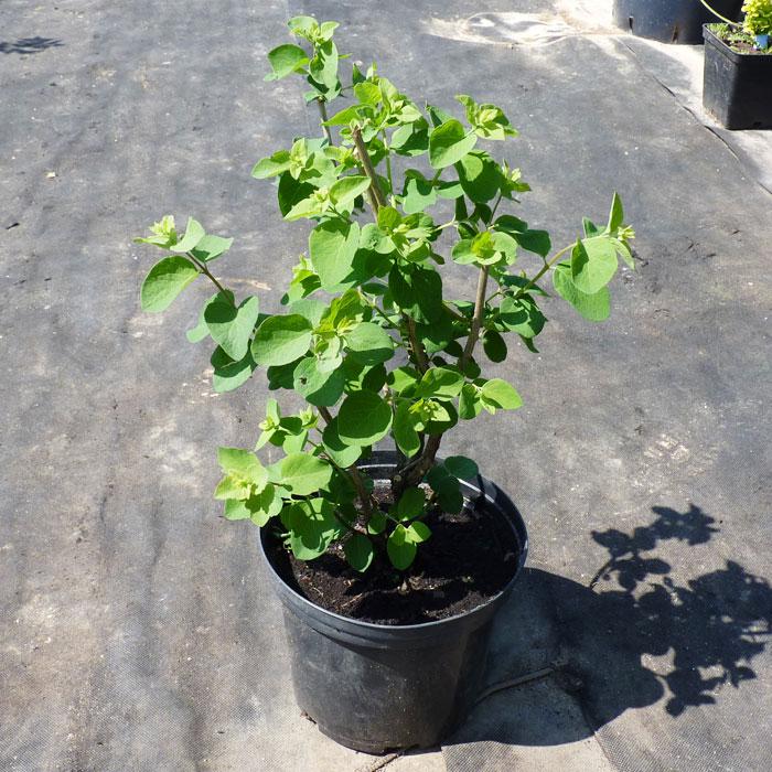 Листья супротивно расположенные, округлые, зеленые.