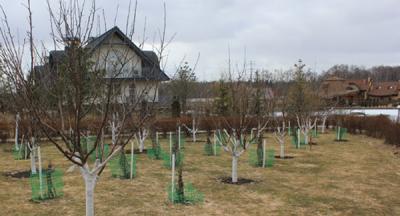 Раньше стволы деревьев на зиму оборачивали мешковиной, ветошью, еловым лапником. Сейчас садоводы всё чаще используют различные виды современных нетканых материалов или специальную защитную сетку, которую надевают на ствол растения. Сетка гарантированно защищает от грызунов. До наступления морозов основания стволов молодых деревьев окучивают землей и уплотняют полученные холмики, а в течение зимнего периода утаптывают снег на приствольных кругах, чтоб под образовавшейся плотной массой не могли пролезть мыши. От более крупных вредителей— зайцев, спасут только защитные сетки высотой до 100 см. Там, где зайцев много, дополнительно проводят обработку стволов специальными препаратами с отпугивающим запахом.