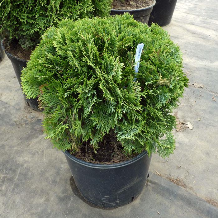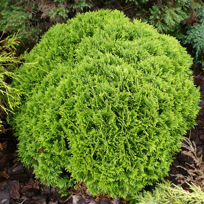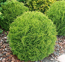 Западная карликовая туя Даника активно востребована в декоративном садоводстве благодаря эффектной шарообразной форме плотной структуры.