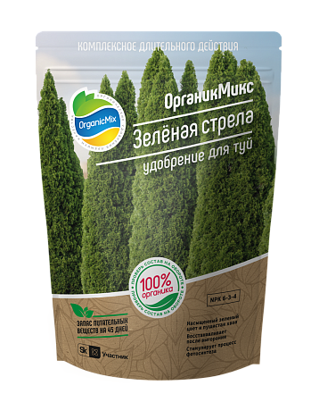 Удобрение хвойное ОрганикМикс для туй ЗЕЛЕНАЯ СТРЕЛА 850г