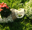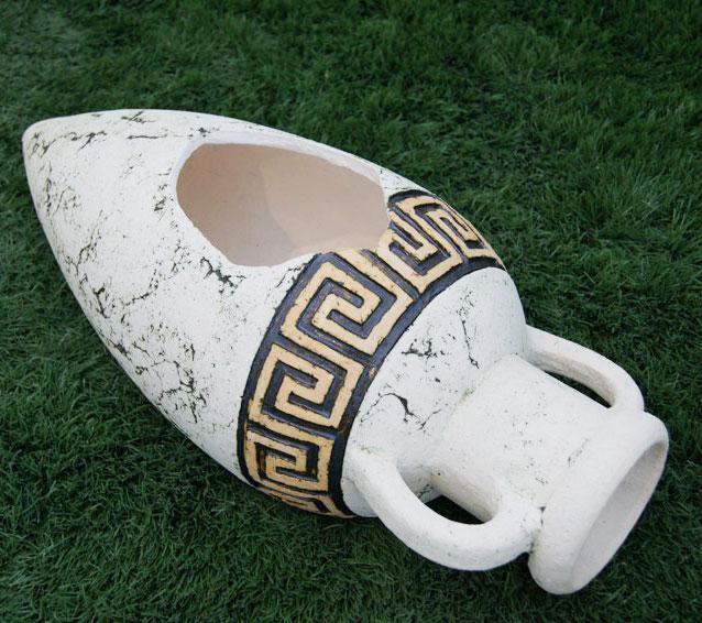 Изделие проходит 2 высокотемпературных обжига, что делает амфору достаточно крепкой. Фигура не разрушается под воздействием окружающей среды (морозостойкая), не меняет цвета.