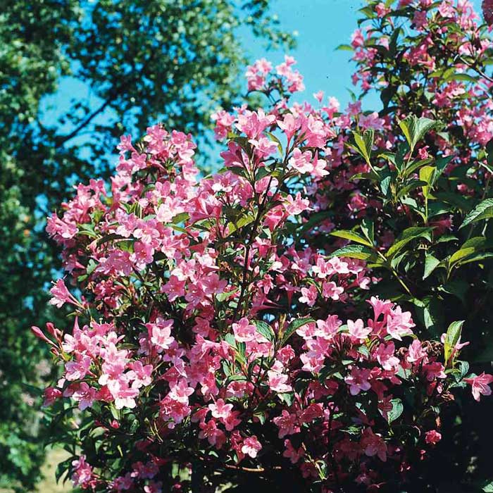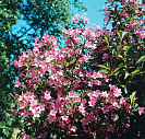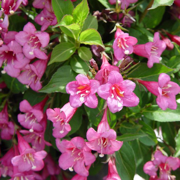 Цветёт очень обильно в июне-июле, цветки длиной 1,5-2 см темно-розовые, собраны в соцветия по 3-4 штуки.