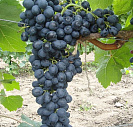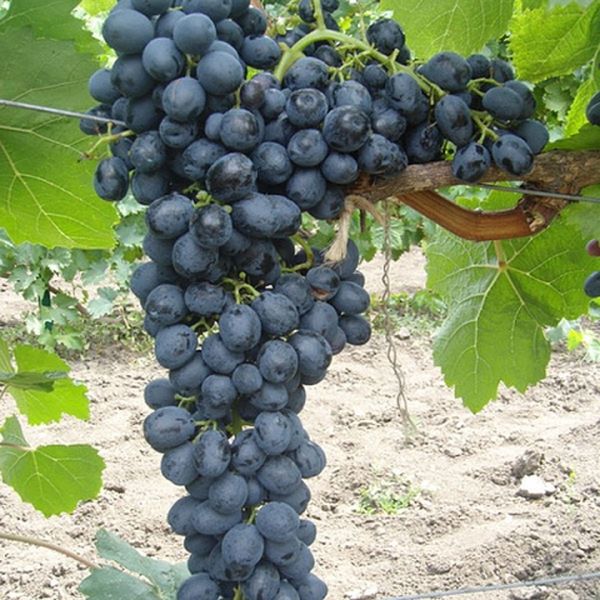 Грозди очень крупные, до 30 см длиной, 0,6 — 0,9 кг, плотные, ягода крупная, весом 4-5 г, овальная или продолговатая 25 мм х 19 мм, фиолетового цвета. Мякоть плотная, хрустящая, приятного нейтрального вкуса.