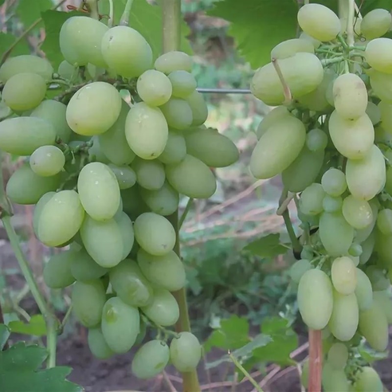 Гроздь 400-600. Тонкокожие ягоды белого или янтарного цвета, конические, довольно крупные, имеют заостренный кончик, умеренно плотные. Масса 6-8 г.