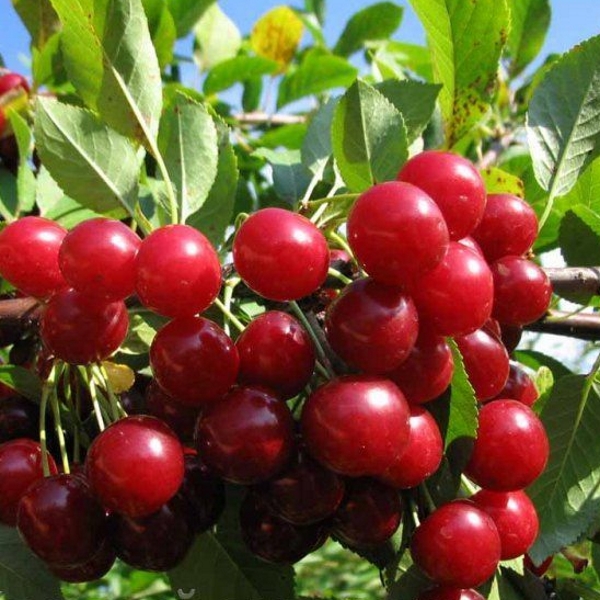 Плоды массой 2,5-3 г. округлые, высота 15 мм, ширина 16 мм, толщина 14,5 мм, чуть сжатые со стороны шва. Воронка плода мелкая, верхушка округлая. Плоды темно-красные, мякоть красная, нежная, сок розовый.