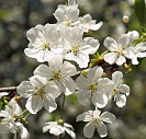 Цветки белые, душистые, до 2,5 см. в диаметре, по 2 — 4 на длинных голых цветоносах в зонтиковидных соцветиях. Цветет в конце апреля—мае. Цветки появляются одновременно с распусканием листьев. Продолжительность цветения 10 - 20 дней.