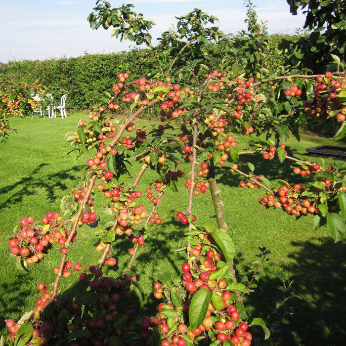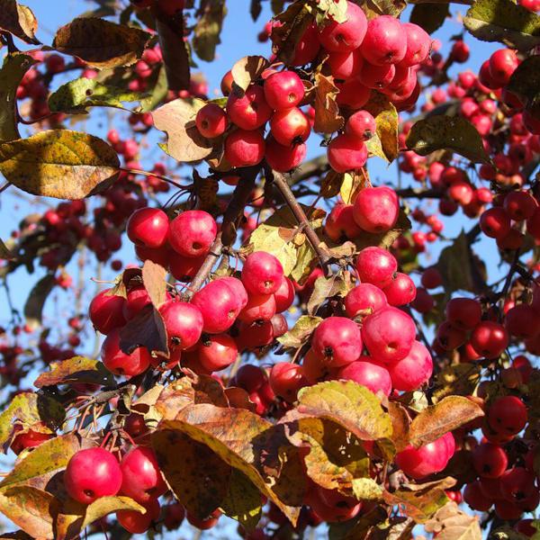Плоды яркие, красные или оранжевые, долго сохраняются на ветвях.