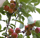 Плоды округлые или слегка сплюснутые, без чашечек,1,5-2,3 см. длиной и 2,6 в диаметре, оранжево-красные, в красную полоску и еле заметную голубовато-серую полоску, тонкая плодоножка до 3 см длиной.