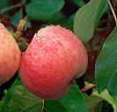 Размер плодов – от среднего до крупного (60-80 г), цвет беловато-желтый со слабым розовым румянцем.