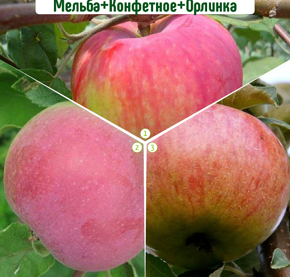 Яблоня домашняя 'Мельба/Конфетное/Орлинка' (тройная прививка)