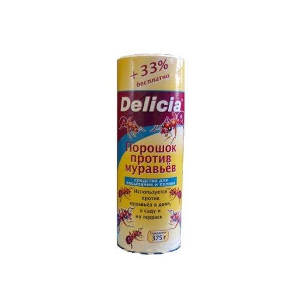 Препарат представлен в виде порошка, что позволяет его двумя способами. Порошок Delicia рассыпать тонким слоем на путях передвижения муравьев, около их гнезд. Трещины, щели и швы должны быть обсыпаны особенно обильно из расчета 10 г на квадратный метр. Муравьи переносят порошок в свое гнездо, где он поедается муравьиной королевой и подрастающим потомством. Кроме этого, препарат Delicia обладает контактным действием.