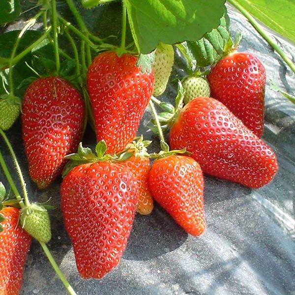 Ягоды первого сбора крупные до 30 г, последующие мельчают незначительно. Окраска ягод красная и тёмно-красная. Семянки поверхностные. Мякоть красная, сочная.