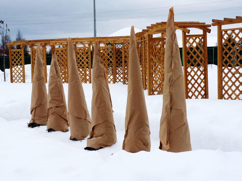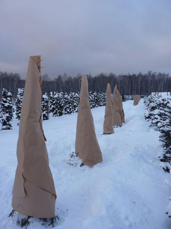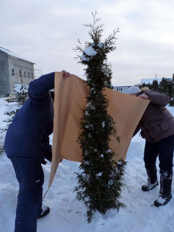 Укрытие туй от зимних солнечных ожогов