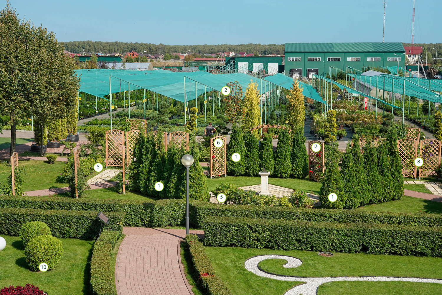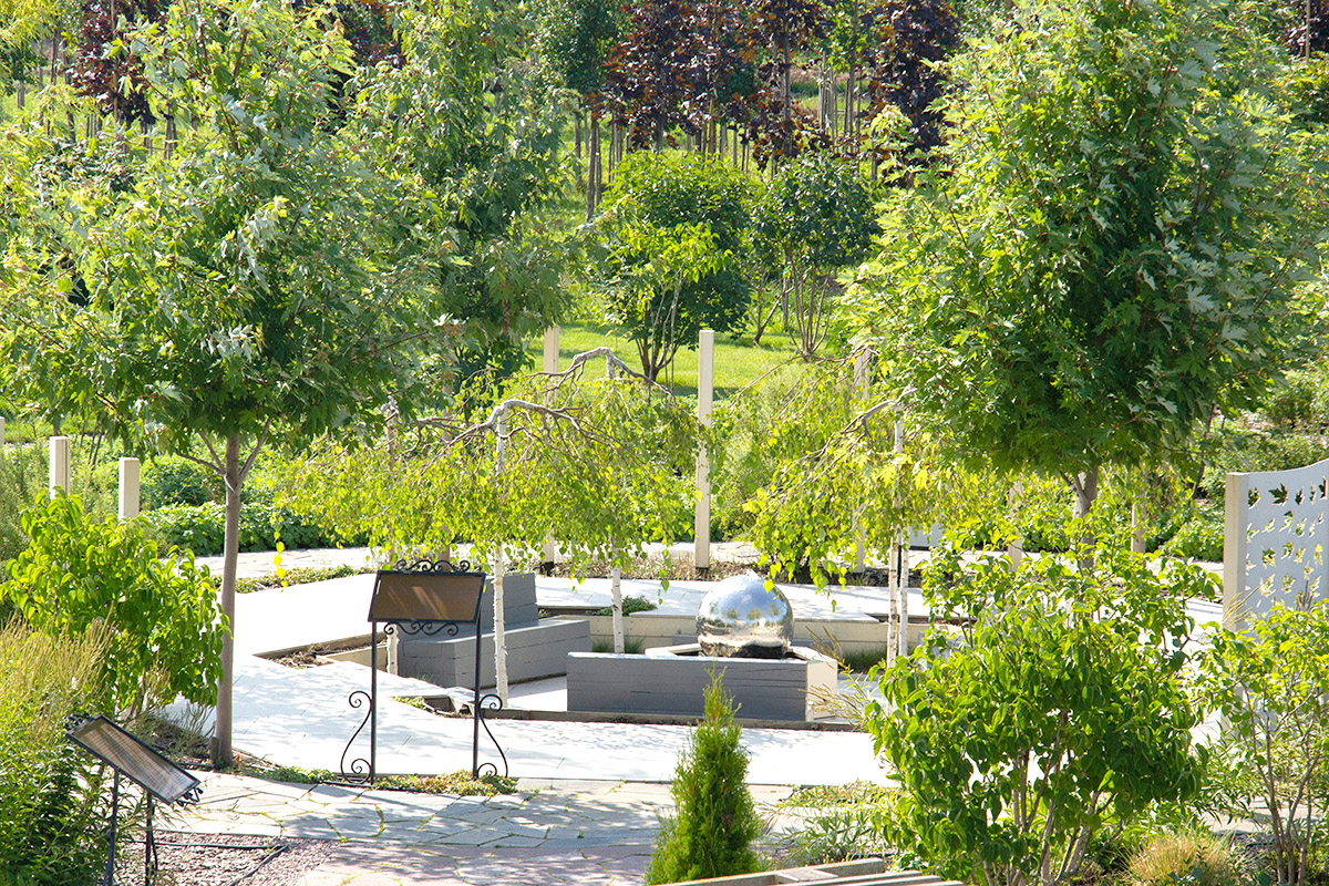 В зоне благоустройства на нашей территории Вы сможете отдохнуть после совершения покупок, насладиться прекрасными видами сада, полюбоваться гармонией цветов и деревьев, красотой природы, её форм и красок.