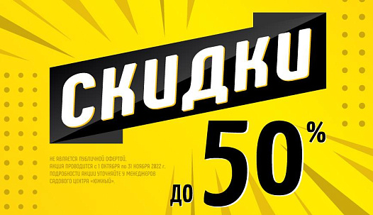 Скидки до 50% в Южном: огромный ассортимент деревьев, кустарников и товаров для сада.